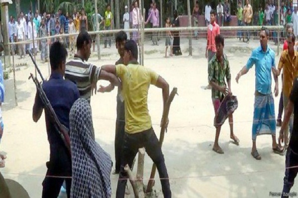 কিশোরগঞ্জ : কিশোরগঞ্জের করিমগঞ্জ উপজেলার দেহুন্দা ইউনিয়নের ভাটিয়া উচ্চ বিদ্যালয় কেন্দ্রে দুই মেম্বার প্রার্থীর সমর্থকদের সংঘর্ষে একজন সহকারি প্রিজাইডিং অফিসারসহ অন্তত ৫ জন আহত হয়েছেন। এসময় পরিস্থিতি নিয়ন্ত্রণে আনেত পুলিশ ১০ রাউন্ড ফাঁকা গুলি করে। সকাল ১০টার দিকে কেন্দ্রে গোলযোগের পর ওই কেন্দ্রে ভোটগ্রহণ স্থগিত করা হয়েছে। আহত সহকারী প্রিজাইডিং অফিসার মো. মজিবুর রহমানকে কিশোরগঞ্জ জেলা হাসপাতালে ভর্তি করা হয়েছে। এদিকে সকাল সোয়া ১০টার দিকে জেলার ইটনা উপজেলার জয়সিদ্ধি ইউনিয়নের ভয়রা সরকারি প্রাথমিক বিদালয় কেন্দ্রে হামলা চালিয়েছে নৌকা প্রতীকের সমর্থকরা। এসময় এলাকায় আতঙ্ক ছড়িয়ে পড়ে। ফলে কেন্দ্রটির ভোটগ্রহণ স্থগিত করা হয়।