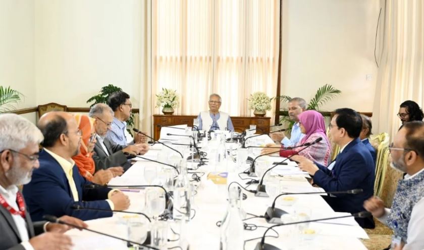 প্রধান উপদেষ্টা প্রফেসর মুহাম্মদ ইউনূসের সভাপতিত্বে জাতীয় প্রশিক্ষণ কাউন্সিলের নবম সভায় অনুষ্ঠিত হয়েছে। এতে অন্যান্যদের মধ্যে উপস্থিত ছিলেন অর্থ উপদেষ্টা ড. সালেহ উদ্দিন আহমেদ, আইন উপদেষ্টা ড. আসিফ নজরুল, পররাষ্ট্র উপদেষ্টা মো. তৌহিদ হোসেন, স্বাস্থ্য উপদেষ্টা নূরজাহান বেগম, জনপ্রশাসন মন্ত্রণালয়ের সিনিয়র সচিব ড. মো: মোখলেস উর রহমান, ঢাকা বিশ্ববিদ্যালয়ের উপাচার্য নিয়াজ আহমেদ খান।
