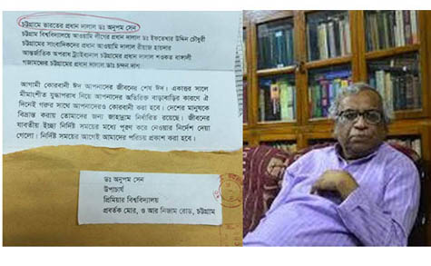একুশে পদকপ্রাপ্ত শিক্ষাবিদ ও প্রিমিয়ার বিশ্ববিদ্যালয়ের উপাচার্য (ভিসি) ড. অনুপম সেন, চট্টগ্রাম বিশ্ববিদ্যালয়ের উপাচার্য ড. ইফতেখার উদ্দিন চৌধুরীসহ পাঁচজনকে হত্যার হুমকি দিয়ে একটি উড়ো চিঠি এসেছে।