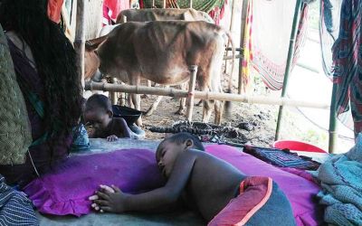 সেখানে ছোট্ট-ছোট্ট ছাপড়া ঘর তৈরি করে শেষ সম্বল হাঁস-মুরগি, গরু-ছাগল নিয়ে একসঙ্গে গাদাগাদি করে বসবাস করছেন তারা।