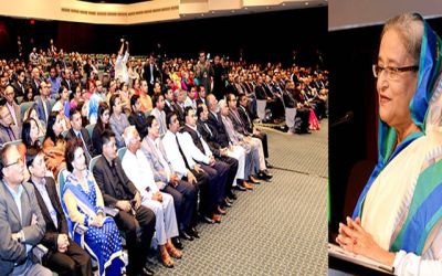 ২০২১ সাল নাগাদ বাংলাদেশকে উচ্চ মধ্যম আয়ের এবং ২০৪১ সাল নাগাদ উন্নত দেশে পরিণত করার অঙ্গীকার ব্যক্ত করে শেখ হাসিনা দেশের বিশেষ অর্থনৈতিক জোনে বিনিয়োগের জন্য প্রবাসী বাংলাদেশিদের প্রতি আহ্বান জানান।
