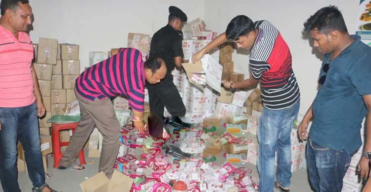 গত সোমবার বিকেলে রূপসায় অবস্থিত শিল্পপতি কাজী শাহনেওয়াজের মালিকানাধীন শাহনেওয়াজ গ্রুপের মাছ কোম্পানি ‘শাহনেওয়াজ সি ফুডস’ এর অভ্যন্তরে র্যাব-১ ও ৬ যৌথভাবে অভিযান চালিয়ে এসিআই ও এসকেএফ কোম্পানির নাম ব্যবহার করা প্রায় ৩ লাখ ৭৫ হাজার পিস নকল অ্যান্টিবায়োটিক ফ্লুক্লক্স ক্যাপসুল, এক বস্তা রেনিটিড ট্যাবলেট, ৪ বস্তা বিভিন্ন নামের ওষুধ, প্রায় আড়াই লাখ পিস ওষুধের খালি খোসা, নকল ওষুধের কাঁচামাল, চালের গুড়া, কসমেটিক, কেমিক্যাল ও পাউডারসহ কয়েক কোটি টাকার উপকরণ জব্দ করা হয়।