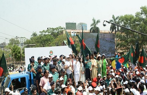 কর্মসূচিতে জাতীয় স্কাউট, বাংলাদেশ ন্যাশনাল ক্যাডেট কোর (বিএনসিসি), ঢাকা মেট্রোপলিটন পুলিশ (ডিএমপি), ফায়ার সার্ভিস, নৃত্যশিল্পী, চলচ্চিত্র প্রযোজক, পরিচালক, অভিনেতা, বিভিন্ন সামাজিক সংগঠন ও শিক্ষা-প্রতিষ্ঠান থেকে লোকজন অংশ নিয়েছে।