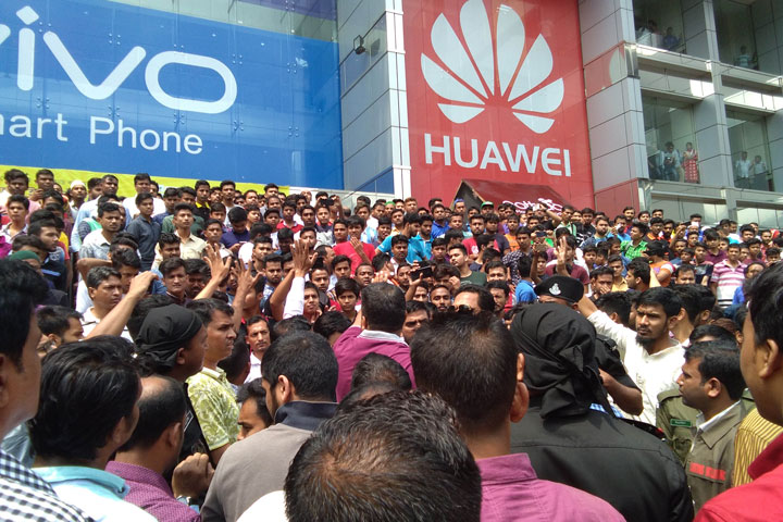এদিকে সকালে পান্থপথের বসুন্ধরা সিটি মার্কেট থেকে মোবাইল ফোন জব্দ করে বের হয়ে আসার পথে ব্যবসায়ী ও দোকান কর্মচারীদের রোষানলে পড়েন এডিজি জিয়া উদ্দিনসহ শুল্ক গোয়েন্দার বেশ কয়েকজন কর্মকর্তা। তাদের নিরাপত্তায় শপিং কমপ্লেক্সের সামনে জড়ো হয় র্যাব ও পুলিশ সদস্যরা। এসময় বসুন্ধরা সিটির সামনের সড়ক অবরোধ করে বিক্ষোভ করেন ব্যবসায়ীরা। এতে পুরো এলাকায় ব্যাপক যানজটের সৃষ্টি হয়। পাশাপাশি প্রায় কয়েক ঘণ্টাজুড়ে বসুন্ধরা সিটিতে থাকা ক্রেতাদের মধ্যে সৃষ্টি হয় আতঙ্ক। পরে জব্দ আইফোনগুলো ফেরত নিতে বসুন্ধরা গ্রুপের অ্যাডমিন অফিসার মোহাম্মদ আলী, বসুন্ধরা মোবাইল ব্যবসায়ী সমিতির সভাপতি বোরহান উদ্দিন ও এডিজি জিয়া উদ্দিনসহ শুল্ক গোয়েন্দারা কয়েকঘণ্টা বৈঠক করেন।