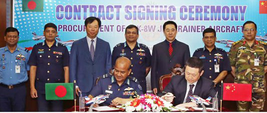 বাংলাদেশ বিমান বাহিনী ও চীনের মধ্যে কে-৮ডব্লিউ জেট ট্রেইনার বিমান ক্রয় সংক্রান্ত একটি চুক্তি স্বাক্ষরিত হয়েছে।