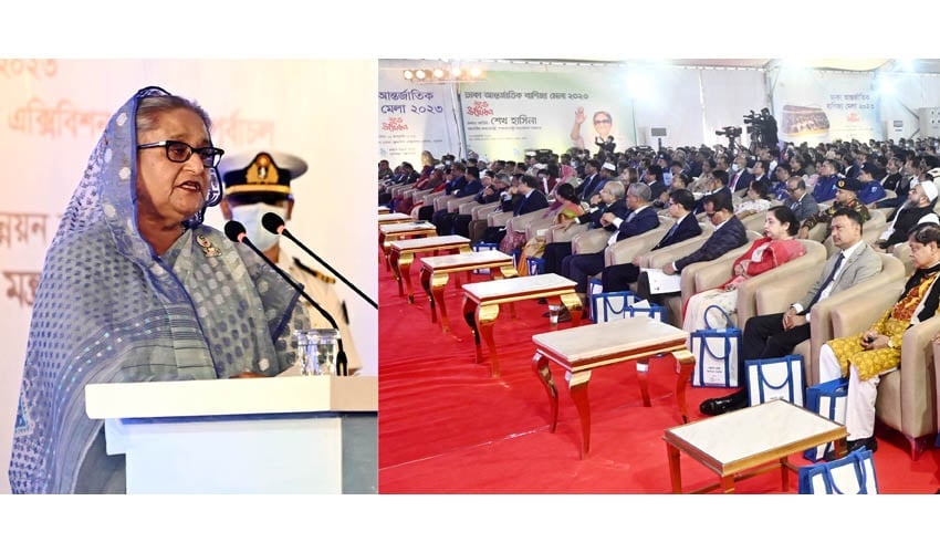 প্রধানমন্ত্রী বলেন, এরপরই এলো যুদ্ধ-রাশিয়া-ইউক্রেন যুদ্ধ, স্যাংশন এবং পালটা স্যাংশন। যে কারণে আজ বিশ্বজুড়ে অর্থনৈতিক মন্দা। পরিস্থিতি মোকাবিলায় উন্নত দেশগুলো হিমশিম খাচ্ছে। নিজেদের মন্দার দেশ হিসাবে ঘোষণা করছে। আমরা কিন্তু এখনো সেই পর্যায়ে যাইনি। আমরা আমাদের অর্থনীতির চাকা সচল রাখতে সক্ষম হয়েছি। বাণিজ্যমন্ত্রী টিপু মুনশির সভাপতিত্বে উদ্বোধনী অনুষ্ঠানে আরও বক্তব্য দেন বস্ত্র ও পাটমন্ত্রী গোলাম দস্তগীর গাজী (বীরপ্রতীক), সিনিয়র বাণিজ্য সচিব তপন কান্তি ঘোষ ও এফবিসিসিআই সভাপতি মো. জসিম উদ্দিন। স্বাগত বক্তব্য দেন রপ্তানি উন্নয়ন ব্যুরোর ভাইস চেয়ারম্যান এএইচএম আহসান।