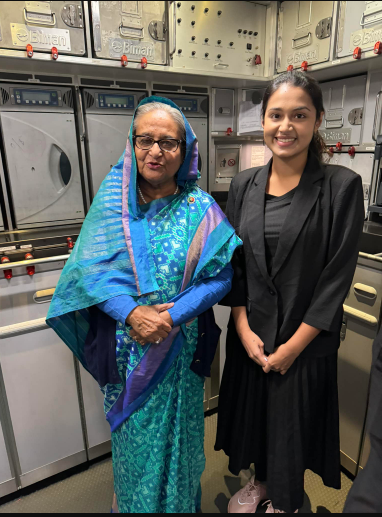 ফেজবুক পেইজে ফারিণ লেখেন, ‘আমাদের মাননীয় প্রধানমন্ত্রীর সঙ্গে একই ফ্লাইটে থাকতে পেরে আমি খুবই ভাগ্যবান। তিনি আমার দেখা সবচেয়ে মিষ্টি নারীদের একজন।’