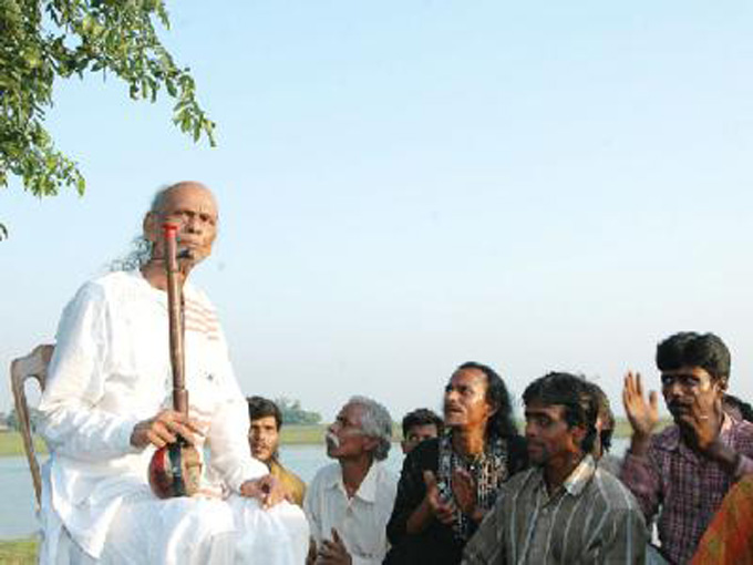 মঞ্চে পারফর্ম করছেন― বাউলশিল্পীরা, তারা গেয়েছেন বাউল করিমের জনপ্রিয় গানগুলো।
