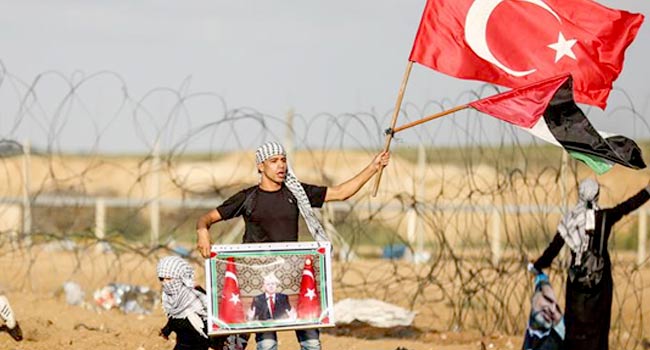 তুরস্কের পতাকা ও এরদোগানের ছবি নিয়ে ফিলিস্তিনিদের উল্লাস