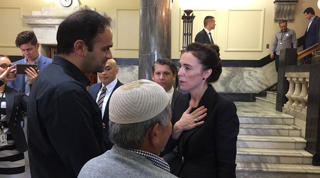 এরপর প্রধানমন্ত্রী উঠে গিয়ে সংসদে আসা মুসলিমদের সঙ্গে গত ১৫ মার্চ মসজিদে হতাহতের ঘটনায় সমবেদনা প্রকাশ করেন। মুসলিম নারীদের বুকে টেনে নেন।