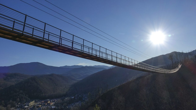 যুক্তরাষ্ট্রের অঙ্গরাজ্য টেনেসির রিসোর্ট শহর গেটলিনবার্গের ধোঁয়াটে পাহাড়ি অঞ্চল জুড়ে তৈরি করা হয়েছে ৬৮০ ফুট বিস্তৃত এ ঝুলন্ত ব্রিজটি।