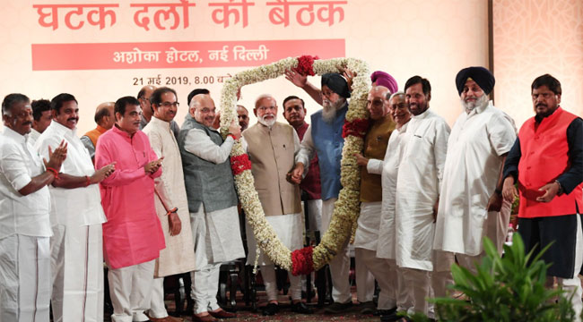 বিজেপির নেতৃত্বাধীন বিদায়ী সরকারের প্রধানমন্ত্রী নরেন্দ্র মোদি বৃহস্পতিবার দুপুরে নিজের টুইটার অ্যাকাউন্ট থেকে প্রতিক্রিয়া জানিয়েছেন বিজয়ের খবরে। মোদি বলেছেন, ঐক্যবদ্ধতা, উন্নয়ন নতুন ভারত গঠনে সহায়তা করবে। তিনি এই বিজয়কে ভারতের বিজয় হিসেবে আখ্যায়িত করেছেন।