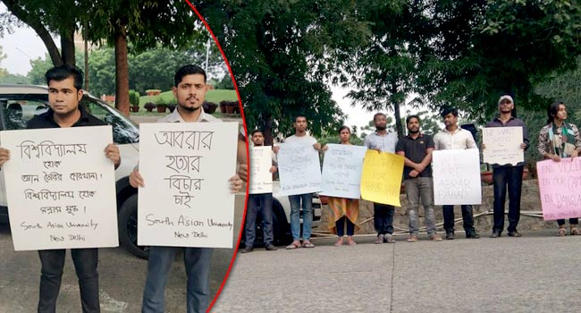 বৃহস্পতিবার বিকেল ৪টার দিকে নয়াদিল্লির ডিপ্লোমেট এলাকায় অবস্থিত সার্ক বিশ্ববিদ্যালয়ের শিক্ষার্থীরা আবরার হত্যার প্রতিবাদে এক মানববন্ধনের আয়োজন করে। এতে সার্কের সদস্য ৮ দেশের শিক্ষার্থীরা অংশগ্রহণ করেন।