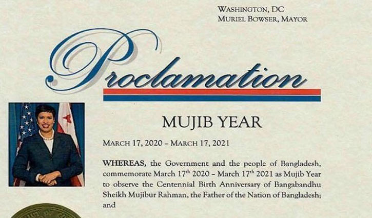 মুজিববর্ষ ঘোষণা করল ওয়াশিংটন ডিসি