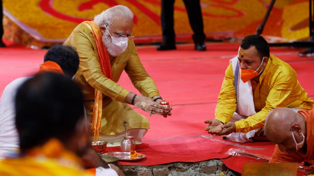 বাবরি মসজিদের জায়গায় রামমন্দির নির্মাণ উদ্বোধন করলেন মোদী