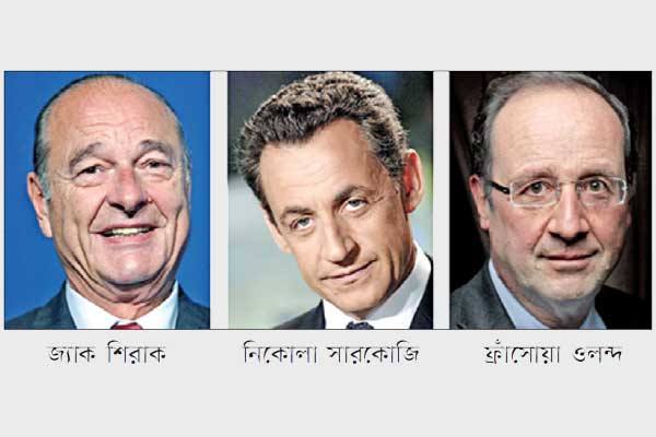 জ্যাক শিরাক, নিকোলা সারকোজি ও ফ্রাঁসোয়া ওলন্দ-ফ্রান্সের সাবেক ও বর্তমান এই তিন