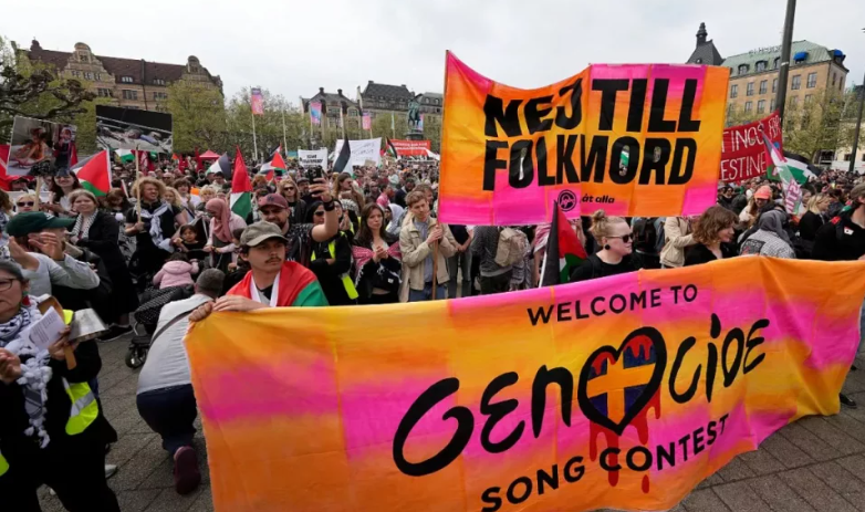 পুলিশ জানিয়েছে, ইসরায়েলের প্রতিযোগীকে গানের প্রতিযোগিতায় অংশ নিতে দেওয়ায় সুইডেনের মালমোতে ১০ হাজারের বেশি মানুষ এই প্রতিবাদ জানান।