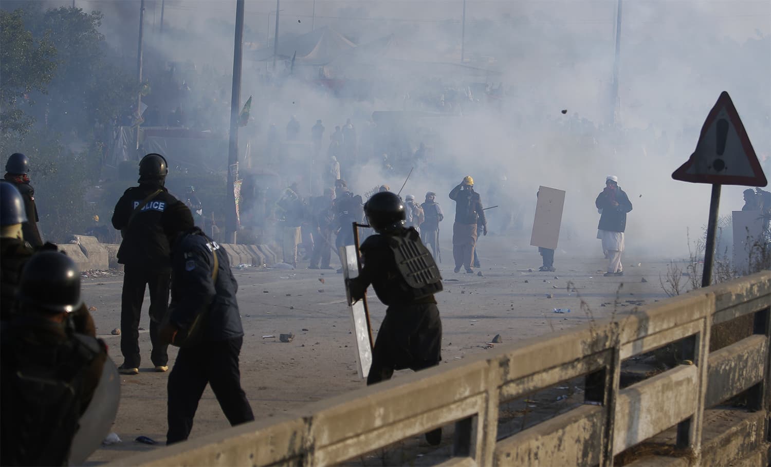 কারফিউ ভঙ্গ করে ইসলামাবাদসহ অনেক স্থানে বিক্ষোভ করায় পিটিআইয়ের জ্যেষ্ঠ নেতাসহ দলটির শত শত কর্মীকে শুক্রবার গ্রেপ্তার করেছে পুলিশ। শুধু ইসলামাবাদেই পুলিশের সঙ্গে সংঘর্ষের সময় ১০০ নেতা–কর্মীকে আটক করা হয়। এ সময় পুলিশের সঙ্গে পাল্টাপাল্টি ধাওয়া, কাঁদানে গ্যাসের শেল ও ইটপাটকেল নিক্ষেপের ঘটনা ঘটে।ডনের প্রতিবেদনে বলা হয়, আজও রাজধানীর অনেক গুরুত্বপূর্ণ সড়ক কনটেইনার দিয়ে বন্ধ করে রাখা হয়। লাহোর ও ইসলামাবাদে স্কুল বন্ধ রাখা হয়। মোবাইল ইন্টারনেটও বন্ধ।