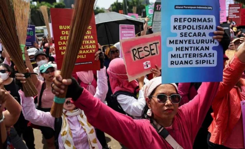 আইনপ্রণেতাদের সুযোগ–সুবিধা বৃদ্ধি ও পুলিশি বর্বরতার প্রতিবাদে গোলাপী রঙের পোশাক পরে, ঝাড়ু হাতে রাস্তায় নেমেছেন ইন্দোনেশিয়ার নারীরা। আজ বুধবার রাজধানী জাকার্তাসহ বিভিন্ন শহরে তাদের এই বিক্ষোভ দেশটিকে নাড়িয়ে দিয়েছে।