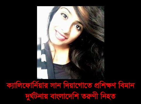 ক্যালিফোর্নিয়ার সান দিয়াগোতে প্রশিক্ষণ বিমান দুর্ঘটনায় বাংলাদেশি তরুণী নিহত