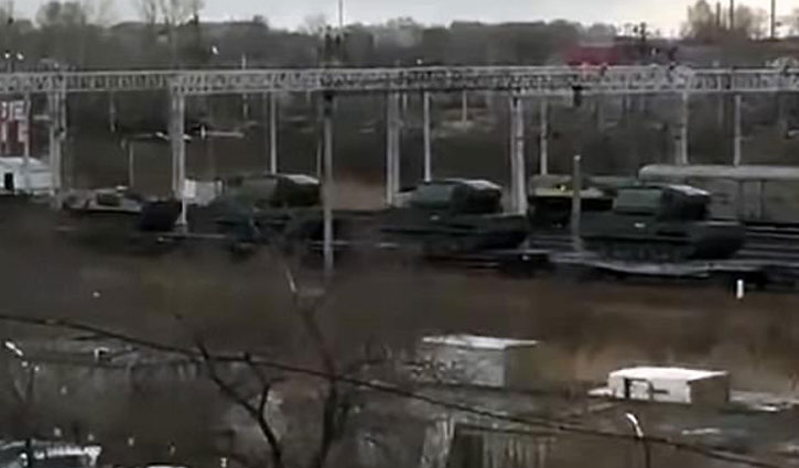 ট্রেনে সৈন্যবাহিনী ও সামরিক সরঞ্জাম সীমান্তের দিকে নিয়েছে রাশিয়া।
