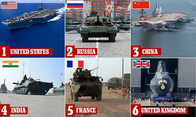 সম্প্রতি প্রকাশিত এক জরিপে দেখা গেছে বর্তমানে বিশ্বে সামরিক শক্তিতে প্রথেমেই রয়েছে যুক্তরাষ্ট্র। এরপরের তিনটি স্থান দখলে রেখেছে এশিয়ার তিনটি দেশ। এর মধ্যে চতুর্থ স্থানে রয়েছে বাংলাদেশের প্রতিবেশি দেশ ভারত। এই জরিপটি করা হয়েছে ১০৬ দেশের উপরে। জরিপে প্রাধান্য পেয়েছে দেশগুলোর সামরিকখাতে বাজেটের পরিমাণ, তাদের জনশক্তি এবং তাদের সামরিক বাহিনীর অস্ত্রশস্ত্রগুলোর পরিমাণ।