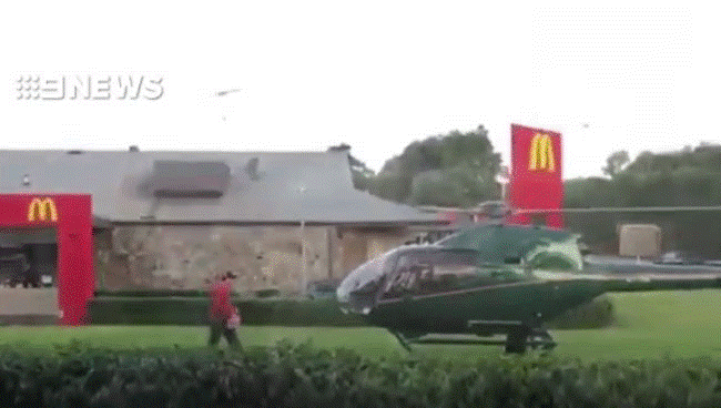 এমনটিই ঘটেছে অস্ট্রেলিয়ার সিডনিতে। সম্প্রতি ইন্টারনেটে প্রকাশিত এমন একটি ভিডিও ভাইরাল হয়েছে। ধারণা করা হচ্ছে ভোজনরসিক ওই কপ্টার চালকের ক্ষুধা পাওয়ায় তিনি হেলিকপ্টারটি নিয়ে স্থানীয় ম্যাকডোনাল্ডের একটি শাখার প্রাঙ্গণে অবতরণ করেন। এরপর তিনি কিছু খাবার কিনে চলে যান।