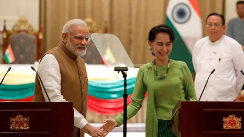 মিয়ানমারের স্টেট কাউন্সেলর অং সান সু চি'র সঙ্গে প্রধানমন্ত্রী নরেন্দ্র মোদির বৈঠকের পর যৌথ বিবৃতিতে বলা হয়, বর্তমানের অশান্ত সময়ে মিয়ানমারের পাশেই থাকবে পুরোনো বন্ধু ভারত।