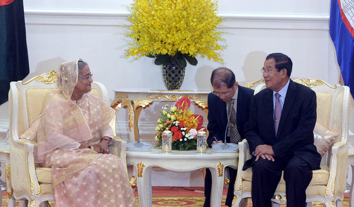 পাশাপাশি রোহিঙ্গা সংকটের ‘টেকসই সমাধানে’ নিশ্চিত করতে কম্বোডিয়ার সহায়তা চাইলেন প্রধানমন্ত্রী শেখ হাসিনা। দুই দেশের দ্বিপক্ষীয় বৈঠকের পর কম্বোডিয়ার প্রধানমন্ত্রী হুন সেনের সঙ্গে এক বিবৃতিতে এ কথা বলেন শেখ হাসিনা।