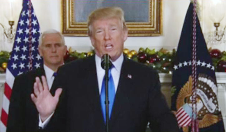 জেরুজালেমকে ইসরায়েলের রাজধানী হিসাবে স্বীকৃতির ঘোষণা দিয়েছেন যুক্তরাষ্ট্রের প্রেসিডেন্ট ডোনাল্ড ট্রাম্প।