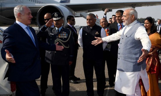 ছয় দিনের ভারত সফরে আসা ইসরায়েলের প্রধানমন্ত্রী বেনিয়ামিন নেতানিয়াহু ও তার স্ত্রী সারা নেতানিয়াহুকে প্রোটোকল ভেঙে দিল্লির বিমানবন্দরে গিয়ে বরণ করে নিলেন দেশটির প্রধানমন্ত্রী নরেন্দ্র মোদি।