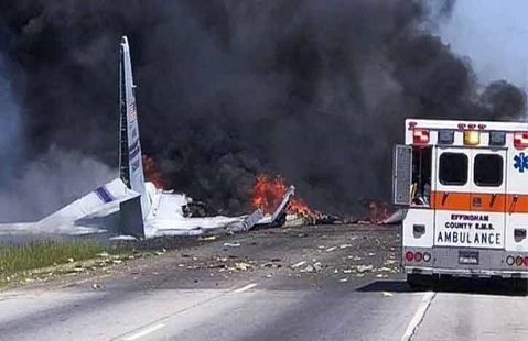 সি-১৩০ নামের ওই বিমানটি বুধবার উপকূলীয় শহর সাভানার স্থানীয় বিমানবন্দর থেকে একটু দূরে মহাসড়কের পাশে বিধ্বস্ত হয়।