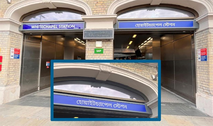 যুক্তরাজ্যের পূর্ব লন্ডনের হোয়াইটচ্যাপেল আন্ডারগ্রাউন্ড স্টেশনটি সম্প্রতি নতুন করে নির্মিত হয়েছে। নতুনভাবে নির্মাণের পর ওই স্টেশনে লাগানো হয়েছে বাংলা হরফে সাইনবোর্ড।