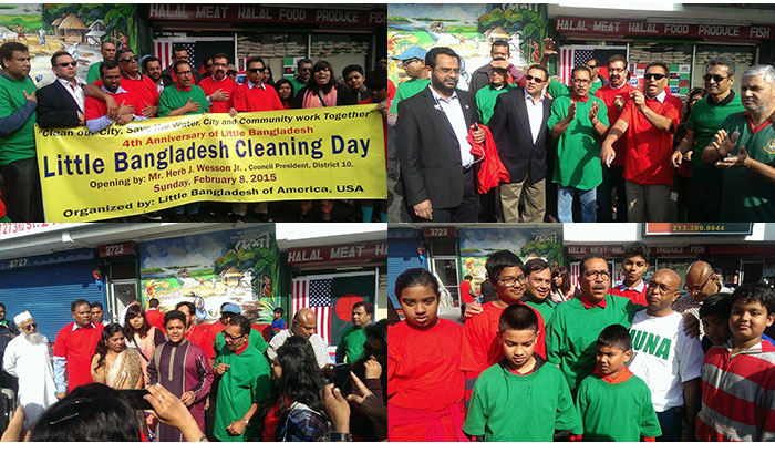 'কিপ ইয়োর সিটি ক্লিন, সেভ দ্যা ওয়াটার, সিটি এণ্ড কমিউনিটি ওয়ার্ক টুগেদার’ স্লোগানকে সামনে রেখে লস এঞ্জেলেসের লিটল বাংলাদেশ কমিউনিটি প্রতিষ্ঠার ৪র্থ বর্ষ উপলক্ষ্যে পরিচ্ছন্নতা অভিযান চালায়। গত ৮ ফেব্রুয়ারি রবিবার সকাল ১০টায় স্থানীয় দেশীরেস্টুরেন্ট চত্তরে এ অনুষ্ঠান উদ্বোধন করেন লস এঞ্জেলেস সিটি কাউন্সিল ম্যন প্রেসিডেন্ট মি: হার্ব ডে ওয়েসন জুনিয়ার। এ সময় লিটল ববাংলাদেশ কমিউনিটি নেতৃবৃন্দ সিটি কাউন্সিলকে বাংলাদেশ কমিউনিটির সাথে সহযোগিতার জন্য প্লাগ প্রদান করেন।ওয়েসন জুনিয়র বলেন, আমি বাংলাদেশ কমিউনিটির কর্মতৎপরতার ভিষণ ভাবে আপ্লুত। সিটি ও কমিউনিটিকে কিছু দেবার সক্ষমতা তারা ইতিমধ্যেই অর্জন করেছে। সকল সময় তাদের পাশে থাকার প্রতিশ্রুতি প্রদান করেন। অনুষ্ঠানের শুরুতে দুই দেশের জাতীয় সঙ্গীত পরিবেশিত হয়। কমিউনিটি নেতা শামিম হোসেন ও ড: আবুল হাসেমের পরিচালনায় অনুষ্ঠানে কমিউনিটির বিশিষ্ট নেতৃবৃন্দের মাঝে উপস্থিত ছিলেন মমিনুল হক বাচ্চু, কাজী মশহুরুল হুদা, সামশুদ্দিন মানিক, আনিসুর রহমান, ইঞ্জিনিয়ার সালেহ কিবরিয়া, মুরাদ হামিদ খান, ড: জয়নাল আবেদীন, আশরাফ হোসাইন আকবর, সিটি সেফটি অফিসার আওলাদ হোসাইন, শফিউল আলম বাবু, মজিব সিদ্দিকী, তৌহীদ সোলায়মান খান তুহিন, মেহেদী হাসান, টিয়া হাবিব, শামসুল আরেফিন হাসিব, মুরশেদ আলম, জিল্লুর রহমান, আঞ্জুমান আরা শিউলি,সৈয়দ এম হোসাইন বাবু, আহমেদ ফয়সাল, বুলবুল সিনহা প্রমুখ।কর্মসূচিতে অংশ নেওয়া ভলেনটিয়ারদের জন্য লাল-সবুজের টি শার্ট প্রদান ও মুক্তিযোদ্ধা এনামুল হকের বিরিয়ানী এন্ড কাবাব হাউজে আপ্যায়নের ব্যবস্থা করেন আয়োজকবৃন্দ। নতুন প্রজন্মের তরুন'রা ব্যপক উৎসাহ উদ্দীপনার সাথে এই পরিচ্ছন্ন অভিজানে অংশ নেয়। নতুন প্রজন্মের পক্ষথেকে বক্তব্য রাখে বাংলাদেশী আমেরিকান উদীয়মান তরুণ শেখ জীবরান (১৪)। এরপর দুটি ভলেনটিয়ার গ্রুপ রাস্তার দুই পাশ দিয়ে লিটল বাংলাদেশ পরিচ্ছন্ন করতে অভিযান চালায়। স্থানীয় ব্যবসায়ী, পথচারী ও চলমান গাড়ি থেকে হর্ন বাজিয়ে বাংলাদেশীদের এ কর্মতৎপরতাকে স্বাগত জানান। এই পরিচ্ছন্ন অভিজানে লস এঞ্জেলেস সিটি সকল সরঞ্জাম সরবরাহ করে।