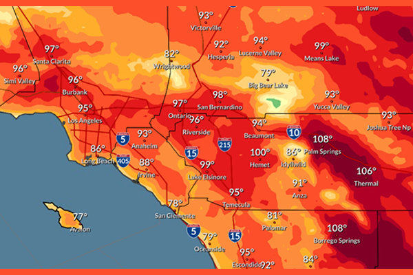 মঙ্গলবার মূল ভূখণ্ডে সান বার্নারদিনহোর মতো শহরগুলোতে তাপমাত্রা ছিল ৯৯ ডিগ্রি ফারেনহাইটের মতো। পাম স্প্রিং এ তাপমাত্রা রেকর্ড করা হয় আরও বেশি ৪১ ডিগ্রি সেলসিয়াস।