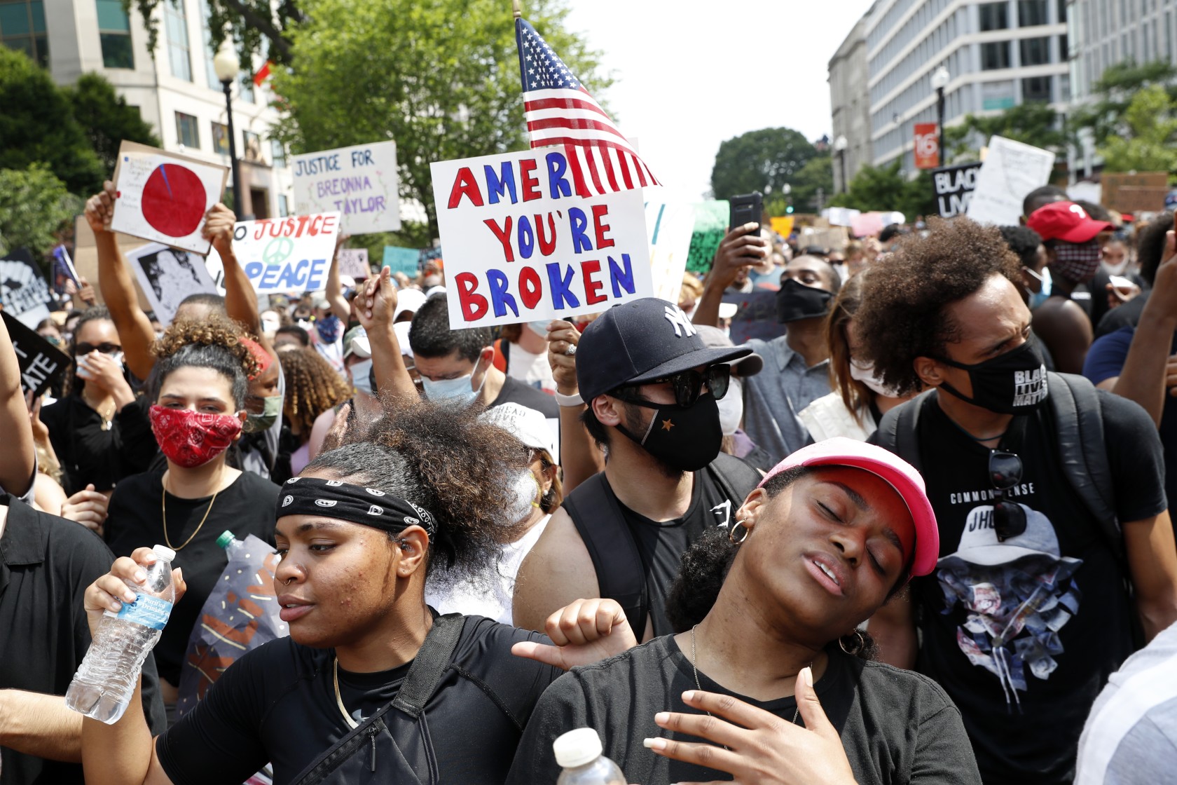 জর্জ ফ্লয়েড হত্যাকাণ্ডের প্রতিবাদে পুরো দেশ জুড়ে বিক্ষোভ অব্যাহত রয়েছে। শনিবারও দেশটির বিভিন্ন শহরের রাজপথে নামে আন্দোলনকারীরা। ফ্লয়েড হত্যার বিচার দাবি ছাড়াও বর্ণবাদ ও বৈষম্যের বিরুদ্ধে নানা স্লোগানে রাজপথ প্রকম্পিত করে তোলে তারা। এদিন রাজধানী ওয়াশিংটনেও বিক্ষোভে অংশ হাজার হাজার মানুষ। ওয়াশিংটনের রাজপথে এটি ছিল স্মরণকালের সবচেয়ে বড় ধরনের বিক্ষোভ। আন্দোলনকারীদের চাপে কানায় কানায় পূর্ণ হয়ে যায় রাজপথ। দোকানপাট বন্ধ রাখেন অধিকাংশ ব্যবসায়ী।
