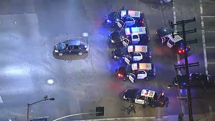 এ সময় একজন পুলিশ তাকে ধরতে গেলে সে দ্রুত সুজুকি সেডান একটি গাড়িতে চড়ে বসে ও ড্রাইভার গাড়িটি নিয়ে পালিয়ে যেতে চেষ্টা করে। এ সময় পুলিশ গাড়ি নিয়ে তাদের ধাওয়া করে ও সাইরেন বাজিয়ে থামতে নির্দেশ দেয়। কিন্তু সুজুকি সেডানের ড্রাইভার দ্রুত গাড়ি চালিয়ে ফ্লোরেন্স এভিনিউতে ইউটার্ন নিয়ে ১০৫ ইস্টবাউন্ড ফ্রিওয়ে দিয়ে পালানোর চেষ্টা করে। পরে পুলিশের আরো ছয়টি ইউনিট গাড়ি ও হেলিকপ্টার সহযোগে গাড়িটিকে থামাতে পিছু নেয়।