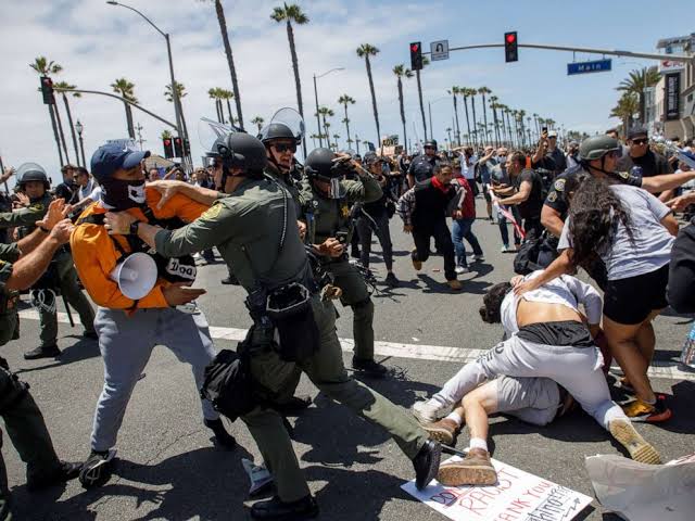 লস এঞ্জেলেসের বিক্ষোভ কর্মসূচির ছবিতে দেখা গেছে, সমর্থকদের মধ্যে অনেকের মুখ রক্তাক্ত হয়ে আছে। পুলিশ ও ট্রাম্প বিরোধীদের সাথে সংঘর্ষে অনেকেই আহত হয়েছে।