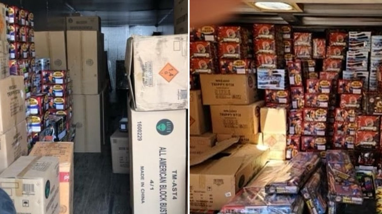 অফিসাররা সেখানে উপস্থিত হয়ে একটি ৬০ ফুটের শিপিং কন্টেইনার দেখতে পান। কন্টেইনারটি অবৈধ আতশবাজি দিয়ে পূর্ণ ছিলো। কন্টেইনারটি থেকে প্রায় দুই হাজার পাউন্ড আতশবাজি জব্দ করা হয়।