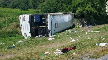 নিউ ইয়র্ক স্টেট পুলিশ এক বিবৃতিতে জানান, ট্যুর বাসটি ক্যায়ুগা কাউন্টির ব্রুটাস শহরের হাইওয়ে পার হওয়ার সময় রাস্তার পাশে সজোরে আছড়ে পরে। এতে বাসের সবাই আহত হোন।