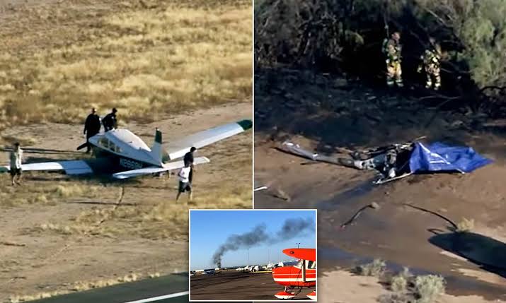 দ্য চ্যান্ডলার ফায়ার ডিপার্টমেন্ট জানায়, এয়ারপোর্টের কাছেই একটি মাঠে সকাল ৮টার পর আকাশ থেকে আগুনসহ প্রায় বিধ্বস্ত একটি হেলিকপ্টার নিচে পরে। কর্মীরা এই সময় দ্রুত আগুন নেভাতে সক্ষম হয়।