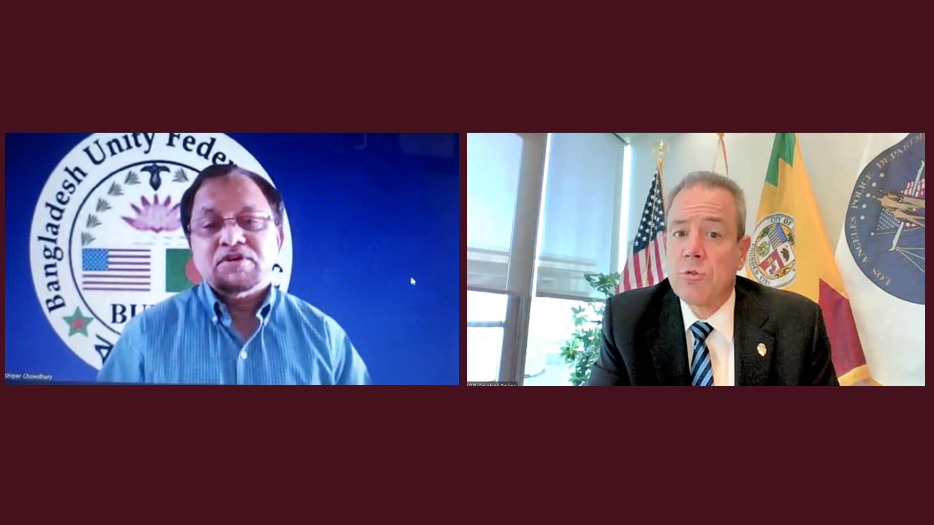 এছাড়া, যুক্তরাষ্ট্রের ‘হেট ক্রাইম’ বেড়ে যাওয়ায় কমিউনিটির প্রতিনিধিরা তাদের উদ্বিগ্নতার কথা জানান। সে বিষয় নিয়েও কথা বলেন পুলিশ কর্মকর্তারা। ভার্চুয়াল আলোচনায় এলএপিডি প্রধান মাইকেল মুর বলেন, “বাংলাদেশি কমিউনিটির বাসিন্দারা শান্তি প্রিয়, তারা আইন মেনে চলে এবং তাদের প্রতি আমারও শ্রদ্ধা আছে। অপরাধ কমিয়ে আনতে কমিউনিটির সচেতনতা গুরুত্বপূর্ণ। আমরাও চাইব এলএপিডিতে আরো বাংলাদেশিরা কমিউনিটির বাসিন্দারা যোগ দিক।”