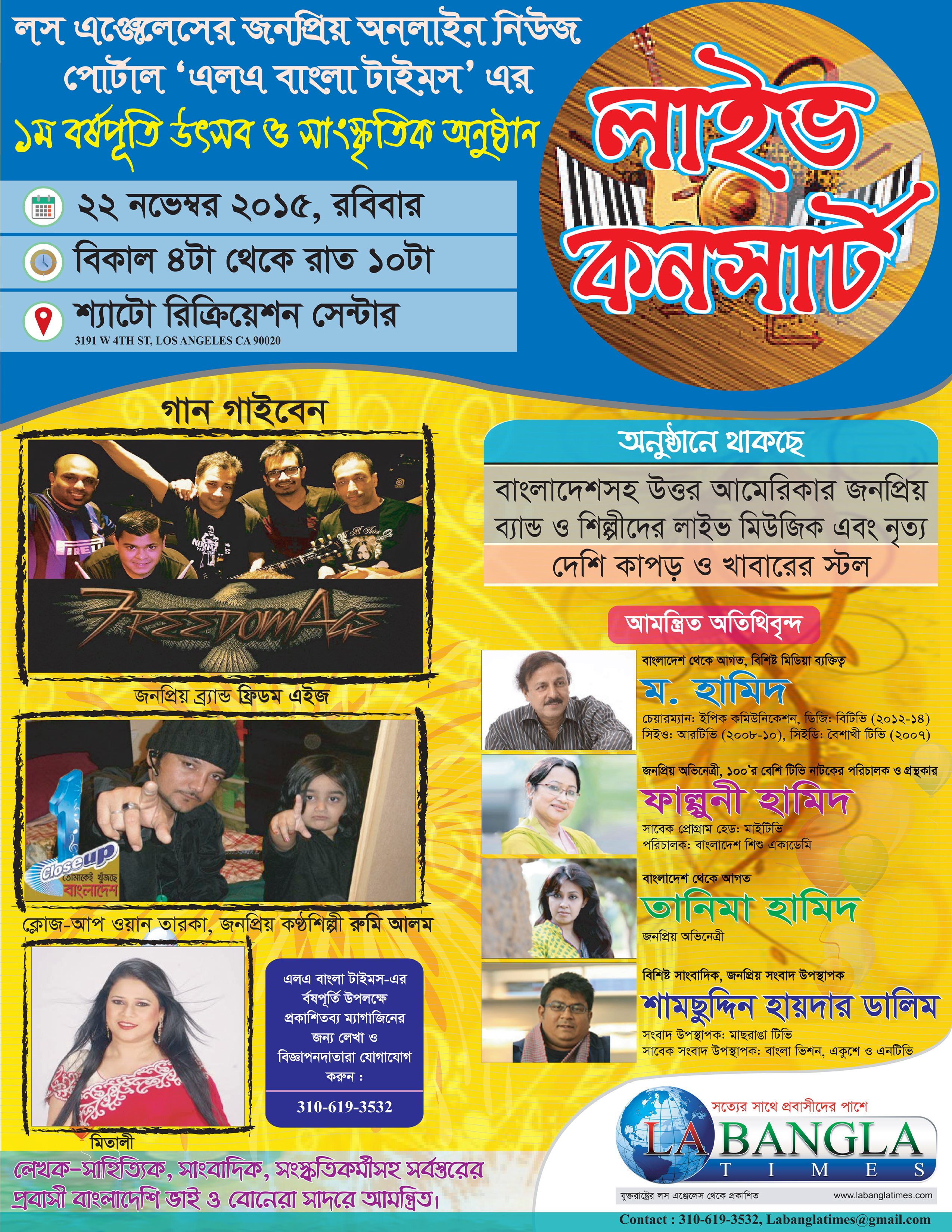 আগামী ২২ শে নভেম্বর ২০১৫ তে লস এঞ্জেলেসের সর্বাধিক জনপ্রিয় অনলাইন পত্রিকা “এলএ বাংলাটাইমস” এর প্রথম