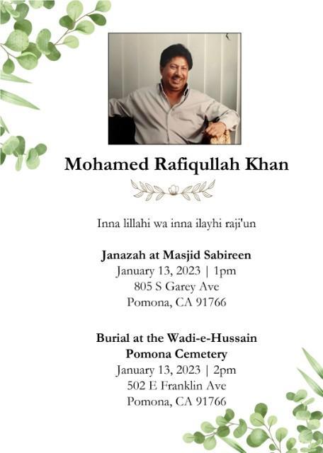 লস এঞ্জেলসের অতি পরিচিত মুখ মো: রফিকুল্লাহ খান মারা গেছেন (ইন্না লিল্লাহি ওয়া ইন্না ইলাইহি রাজেউন)।