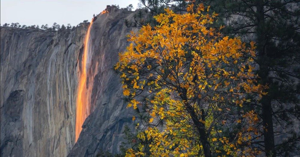 ক্যালিফোর্নিয়ার ইয়োসোমেতি ন্যাশনাল পার্কের ইয়োসোমেতি জলপ্রপাতে হঠাৎ আগুন। এই আগুন যেন ওপর থেকে নিচে চুয়ে চুয়ে পড়ছে। সেই আগুনে আশপাশও আলোকিত হয়ে গেছে। এমন দৃশ্যের জন্য এই জলপ্রপাতের নামই হয়ে গেছে ‘ইয়োসোমেতি ফায়ারফল’।
