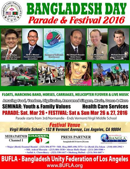 ২৬ ও ২৭ মার্চ লস এঞ্জেলেসে বাফলার ১০ম 'বাংলাদেশ ডে প্যারেড এন্ড ফ্যাস্টিভল'