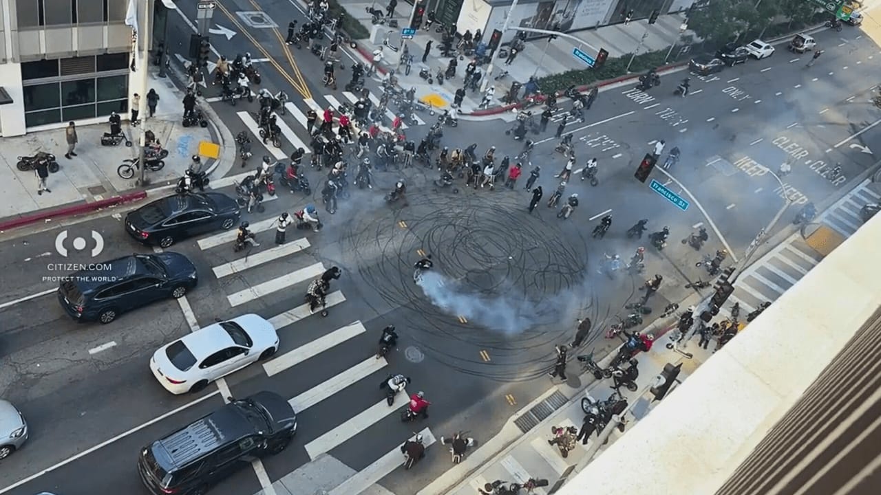 লস এঞ্জেলেস শহরের প্রাণকেন্দ্রে এক রুদ্ধশ্বাস মুহূর্ত ধরা পড়ে ক্যামেরায়, যখন ডজনখানেক মিনিবাইক আরোহী ফ্রান্সিসকো স্ট্রিট ও ওয়েস্ট এইটথ স্ট্রিটের সংযোগস্থলে হঠাৎ করেই যান চলাচল বন্ধ করে স্টান্ট করতে শুরু করে। জায়গাটি ১১০ ফ্রিওয়ের খুব কাছেই।
