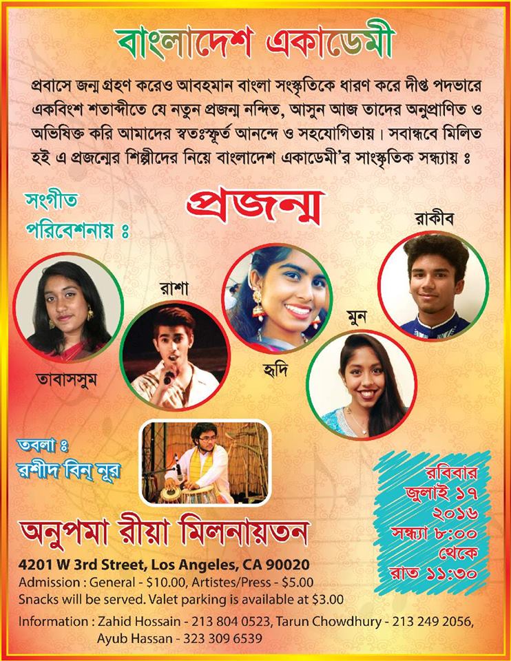 ১৭ জুলাই লস এঞ্জেলেসে বাংলাদেশ অ্যাকাডেমি'র সাংস্কৃতিক সন্ধ্যা