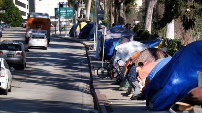 ছবিঃ লস এঞ্জেলেসের রাস্তায় গৃহহীন মানুষের চিত্র।