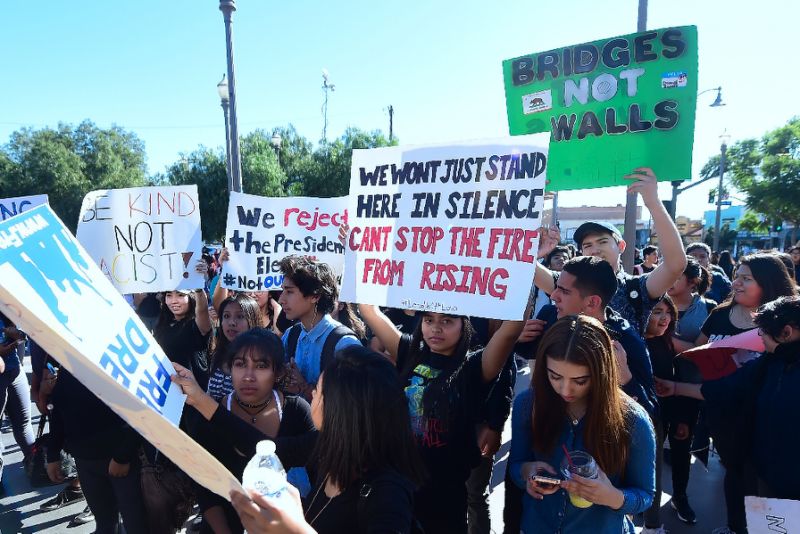 লস এঞ্জেলেসে শিক্ষার্থীরা বয়লি হাইটসে অবস্থিত একটি প্লাজা পর্যন্ত শান্তিপূর্ণ বিক্ষোভ প্রদর্শন করে। এ এলাকাটিতে হিস্পানিকরা সংখ্যাগরিষ্ঠ। বিক্ষোভকারীদের হাতে থাকা বিভিন্ন প্ল্যাকার্ডে লেখা ছিল, ‘জেগে ওঠো’, ‘ঐক্যবদ্ধ হও’।